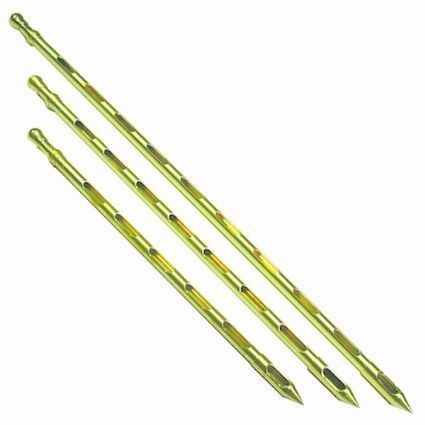 Estas sondas de bronce se pueden utilizar con sólo 4 pies de espacio libre en la parte superior de su silo. La copa permanece cerrada mientras la sonda esta siendo empujada hacia abajo. + INFORMACIÓN